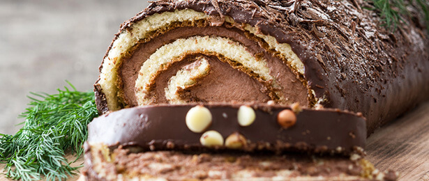 Parce qu’un menu de Noël végétarien ne saurait être complet sans dessert, voici une version de la célèbre bûche de Noël au chocolat, mais en version végane. Pensez bien à préparer la bûche plusieurs heures avant le repas, voire la veille, elle n’en sera que meilleure bien froide. La recette est un peu longue, mais simple : une idée à partager avec vos enfants ?