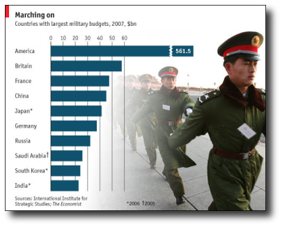 Le saviez-vous ? Le département américain de la Défense est le plus important consommateur de carburant au monde (20 milliards $ en 2008) et ses dépenses énergétiques représentent 80 % de la consommation totale du gouvernement des États-Unis. L’armée américaine serait responsable de 20 % des émissions mondiales de CO2 ou d’un tiers des émissions carbone des pays industrialisés.