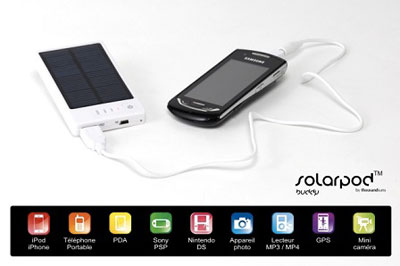 Désigné par certaines revues spécialisées comme le chargeur solaire le plus performant du marché, le Solarpod Buddy commercialisé par Thousands Suns est particulièrement bien équipé. Doté de 6 embouts de raccordement différents, il ne se contentera pas de charger votre smartphone (ce qui n’est déjà pas si mal). Lecteur MP3, GPS, tablette, console de jeux ou appareil photo, ce chargeur devient une véritable batterie de secours.