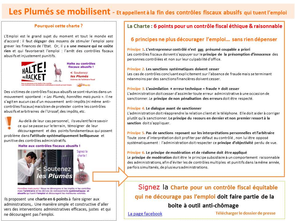 Voici en une page, résumé l’essentiel de l’action des Plumés, des entreprises, de petite taille, qui sont épinglées pour des motifs arbitraires, par l’Urssaf et les impôts qui cherchent de l’argent à tout prix … y compris au risque de l’emploi.