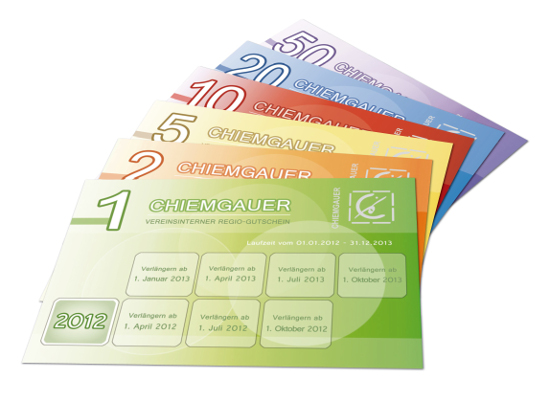 Le Chiemgauer a un petit côté ludique avec ses billets qui ressemblent à des billets de Monopoly ! C’est pourtant un système très sérieux et solide qui existe depuis 2003. La monnaie est structurée par une association reconnue d´intérêt général, le Chiemgauer e.V. et géré au niveau opérationnel par le Regios, centre de paiement accrédité par l´Institut de Microfinance Allemande