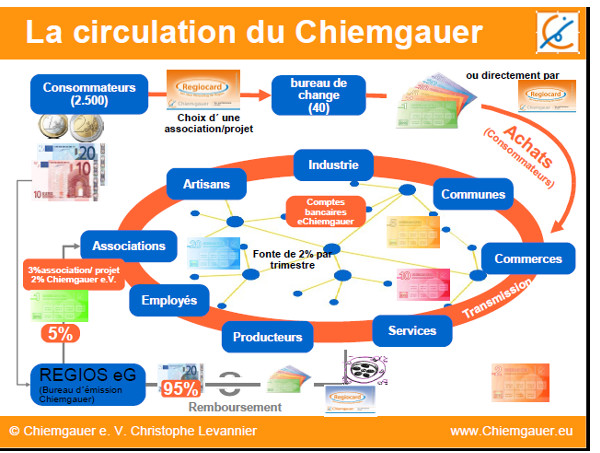 La théorie sur laquelle se base le Chiemgauer est celle de Jean Silvio Gesell, l’inventeur de la monnaie franche. Selon lui, l’argent qui dort dans les banques est un véritable poids mort : il rapporte des intérêts aux banques, en revanche, il n’a aucun intérêt pour l’économie puisqu’il ne sert pas à alimenter la consommation ni la production.