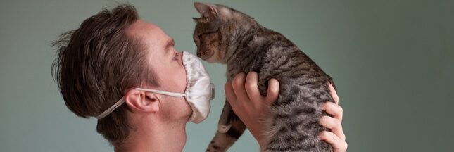 Illustration bannière : Un chat et son maître qui se protège du coronavirus – © Kiryl lis
