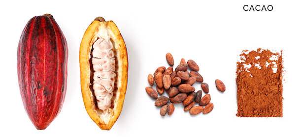 L’ingrédient premier du chocolat est bien sûr le fameux cacao, ou au moins le beurre qu’on en extrait. Le cacao provient des fèves du fruit du cacaoyer, appelé cabosse. Cet arbre exigeant pousse dans certaines régions équatoriales d’Afrique, d’Indonésie et d’Amérique centrale. Trois cultivars sont essentiellement exploités en fonction des arômes recherchés ( note florale, boisée, grillée, fruitée, épicée…) : Criollo, Trinitario, Forastero.