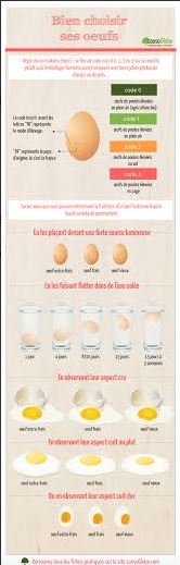 Cette fiche pratique, à épingler dans votre cuisine, explique comment choisir les oeufs grâce à la codification 1, 2, 3 ou 0 mais aussi, et c’est moins connu comment repérer un oeuf frais ou … moins frais.