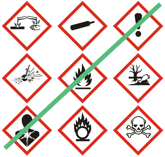 Les produits n’ont pas un effet toxique sur l’environnement. Alors que le règlement de la Commission Européen impose un étiquetage spécifique sur les produits utilisant des produits chimiques dangereux (par le biais de pictogrammes), les produits Cleanea n’en ont pas besoin puisqu’ils n’utilisent aucune substance cancérigène, mutagène ou repro-toxique.