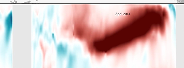 Les températures globales à la surface de l’eau avaient bien augmenté au printemps-été 2014 :