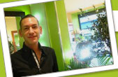 « J’ai ouvert mon salon en octobre 2010, tout a été immédiatement pensé développement durable, en gardant ce qu’il était possible de l’ancien salon tout en misant sur de nouvelles technologies. Ainsi, pour l’éclairage extérieur nocturne, j’ai trouvé des LED fonctionnant grâce à des cellules photovoltaïques. Ici, pas de climatisation, mais un système de ventilation naturel, des produits d’origine bio…