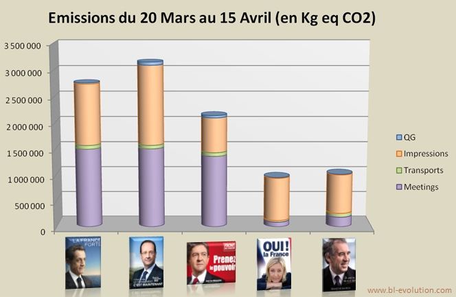 François Bayrou et Marine Le Pen polluent deux à trois fois moins, mais rassemblent beaucoup moins. Cela signifie-t-il que les candidats qui rassemblent, les candidats leader ou favoris ne peuvent faire autrement que de polluer ? Il y a sans aucun doute quelques améliorations à apporter pour abaisser la note carbone de chacun :