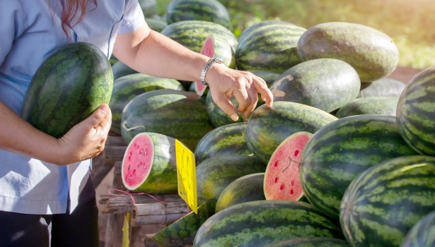 Les petites veines brunes ressemblant à des toiles d’araignée sur la peau de la pastèque indiquent qu’elle a été pollinisée de nombreuses fois, ce qui est souvent un signe de douceur.