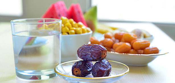 Pendant le Ramadan, ls musulmans cassent le jeûne (iftar) avec des dattes et de l’eau © JOAT