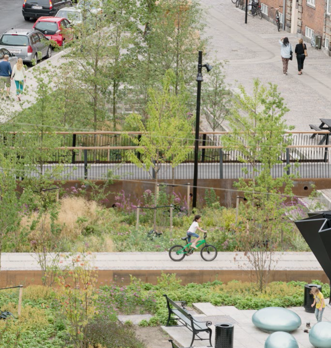 A Copenhague on a compris que construire toujours plus de « dur » n’était pas la bonne solution pour les changements climatiques qui nous attendent. Il vaut mieux, par exemple, augmenter le nombre d’espaces verts que de construire toujours plus d’égouts.