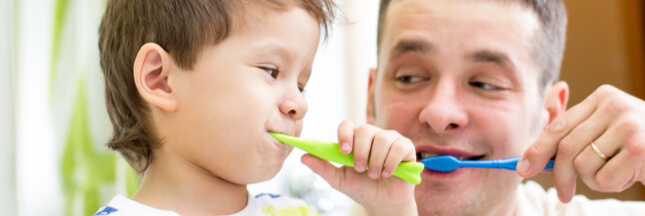 Illustration bannière : Père et fils en train de se brosser les dents – © Oksana Kuzmina