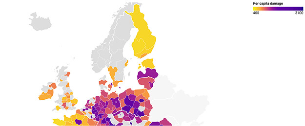 Consultez la carte – Cliquez sur « See the map » et passez votre souris sur votre région pour connaitre le coût de la pollution.