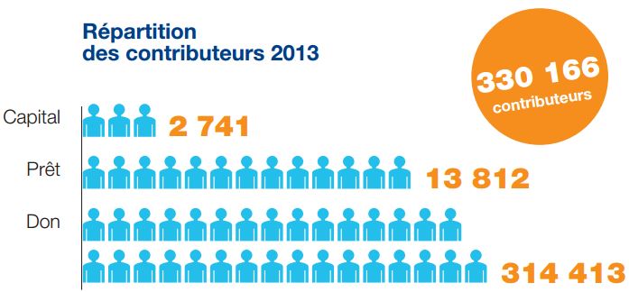 - Le don l’emporte avec 314.413 contributeurs, contre 13.812 prêteurs et 2.741 actionnaires.