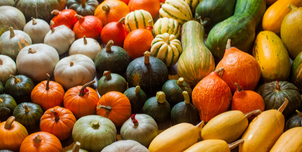 Ex : Citrouille, pâtisson (qu’on trouve plutôt en fin d’été) courge spaghetti, courgette.