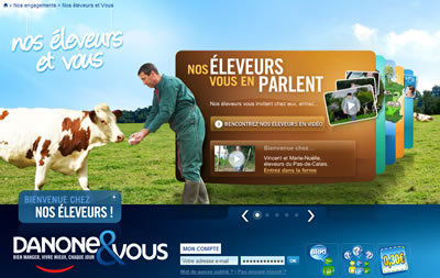 Lancé fin 2010, le site de Danone intitulé « Nos éleveurs et Vous » est destiné à mettre en avant les producteurs de lait qui travaillent avec le Groupe (et qui sont également visibles sur les emballages…).
