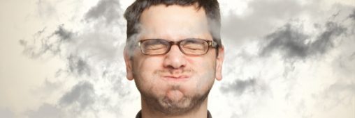 Illustration bannière : Homme retenant son souffle à cause de la pollution – © Ioannis Pantzi