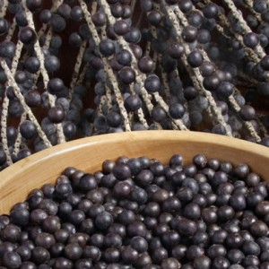 L’açaï provient d’un grand palmier poussant dans la forêt tropicale brésilienne et appelé arbre de vie. De couleur pourpre, la baie d’açaï est riche en antioxydants, en omégas 6 et 9 (luttant contre le mauvais cholestérol et favorisant le bon) ainsi qu’en vitamines.