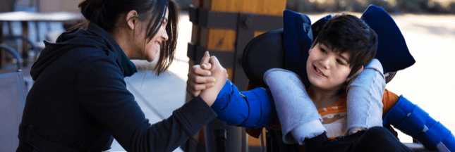 Illustration bannière : Jeune femme aidant un enfant en situation de handicap – © Jaren Jai Wicklund