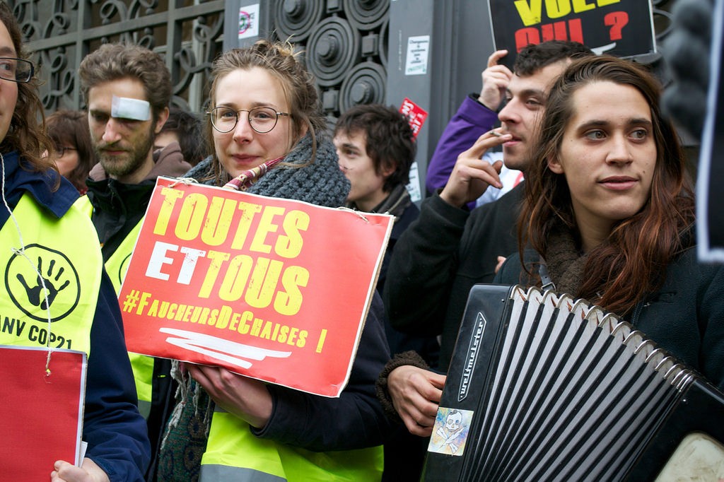 Cette expression fait référence à l’opération lancée un mois avant le lancement de la COP21, à Paris. Le 6 décembre 2015, à Montreuil, plusieurs militants écologistes avaient mené une quarantaine d’opérations dans des agences bancaires, pour y voler 196 chaises qui ont permis l’organisation d’un sommet citoyen.