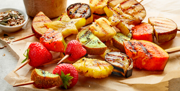 Quant aux fruits, ils se prêtent très bien à la confection de brochettes. Cependant pour la cuisson, il est conseillé de privilégier une plancha ou une grille spéciale pour poissons (que l’on peut retourner facilement) car les fruits vont compoter sous l’effet de la chaleur, et vos brochettes risqueraient de finir dans la braise.