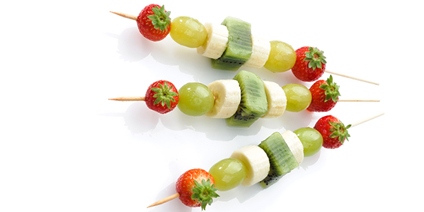 Pour cette recette pleine de soleil, sélectionnez des fruits fermes (melons, pommes, ananas, mangues, kiwis, fraises, bananes…) que vous veillerez à ne pas couper trop petits pour qu’ils tiennent sur les piques.
