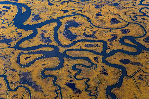 Mangroves, marais, bancs de sables, forêts… Quand l’eau se fraie un chemin au travers des végétaux, du sable ou de la terre, elle laisse sur son passage de jolis serpentins colorés et des formes graphiques dignes de toiles de grands maîtres ! Voyage en photos autour du monde.