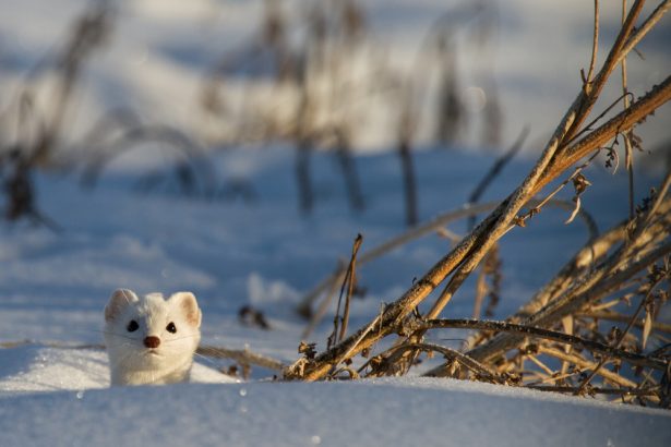 Les hermines sont aussi des animaux qui changent de pelage l’hiver. Elles virent du brun au blanc pour mieux se dissimuler dans la neige, ce qui a valu d’être pourchassées pour leur fourrure pendant des siècles.