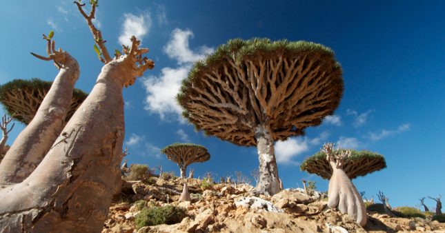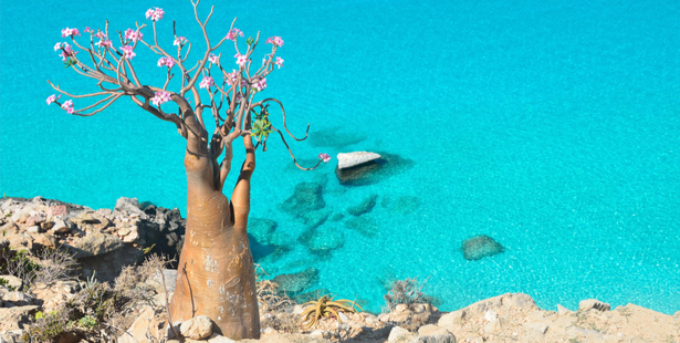 L’archipel de Socotra, au large du Yémen, abrite une incroyable biodiversité. On peut voir sur ces île, et sur elles seules des arbres aux allures de soucoupe volante ou des centaines d’espèces de reptiles, oiseaux et coraux qui ne vivent que sur ces quelques hectares.