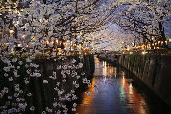 Nakameguro est l’un des meilleurs endroits de Tokyo, où admirer la floraison des cerisiers. Cette image a été prise au printemps 2013 à 満 开 (« Mankai »), un mot qui indique le pic de l’éclosion.