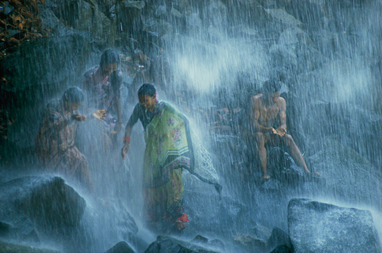 James P Blair a photographié ces pèlerins se baignant sous la cascade de la Narmada en Inde dans 160 pieds (4.8 m) , en Novembre 1988.
