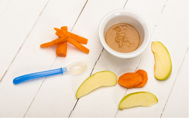 Dès 6 mois, ajouter une cuillère à café d’huile végétale crue, de préférence de première pression à froid, aux purées, soupes, bouillies du midi et du soir.