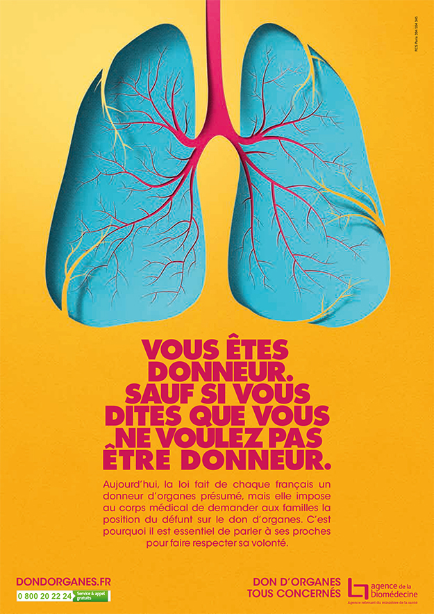 En France, à partir du 1er janvier 2017, nous serons tous des donneurs d’organes par défaut grâce à un amendement de la loi Touraine. Jusqu’ici et depuis 1976, la loi Caillavet indique que chaque Français est présumé donneur d’organes sauf inscription au registre national des refus. Mais dans la grande majorité des cas, le personnel médical consulte les proches. Si la personne n’a rien précisé à ce niveau-là, ou si les proches sont en désaccord avec le choix de la personne décédée, la décision leur revient quoi qu’il advienne. En moyenne, 1 personne sur 3 refuse que des organes soient prélevés sur le défunt.