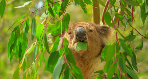 En mangeant des feuilles d’eucalyptus, le koala s’hydrate © Benny Marty