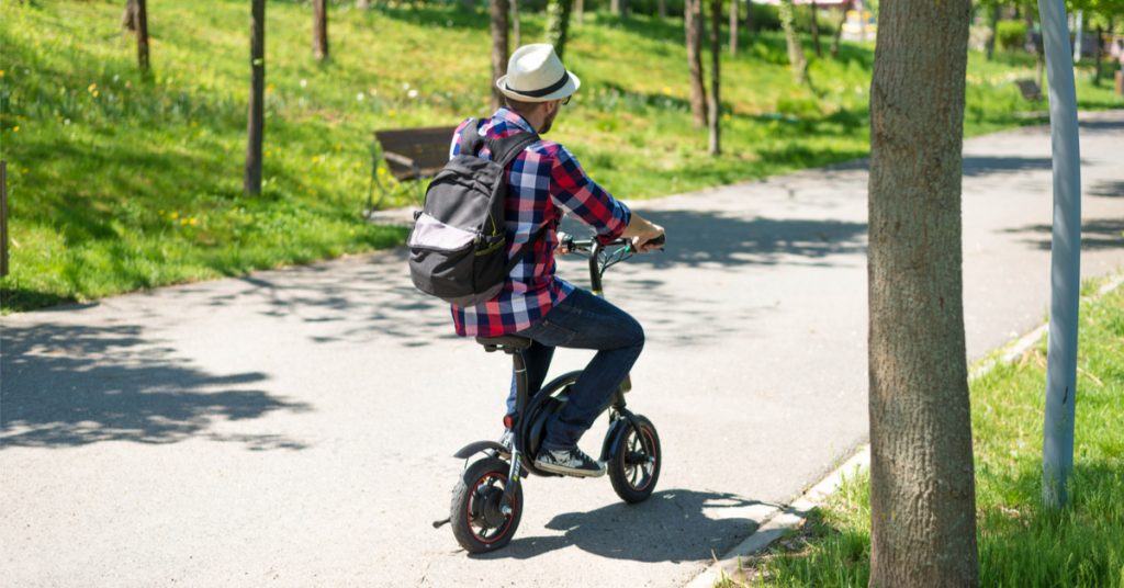 Illustration bannière : Homme dans un parc avec une draisienne électrique – © spiderkettjr / Shutterstock