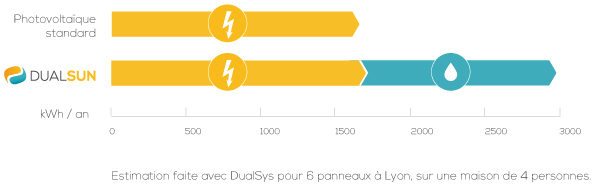 Une installation des panneaux DualSun produit ainsi jusqu’à trois fois plus d’énergie par rapport à une installation photovoltaïque standard !