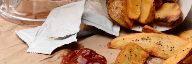 Illustration bannière : Sachets de ketchup et frites – © Steve Cukrov