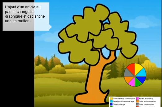 S’il n’a pas acheté écologique, sur un écran au dessus de la caisse, un arbre représentant son achat perdrait plus ou moins ses feuilles ou même mourrait selon le niveau de l’empreinte carbone des achats. Cela permettrait ainsi aux gens – sans les culpabiliser – de leur faire comprendre leur incidence sur l’environnement et sa préservation, l’éco-scan illustrant les conséquences des choix du consommateur».