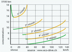 Le maintien à un vitesse régulière, au plus haut rapport, permet une consommation constante de carburant, mais pas excessive, et permet également de mieux anticiper les imprévus de la route.
