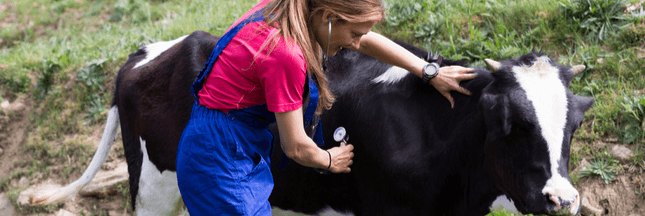 Illustration bannière : Vétérinaire auscultant une génisse – © 135pixels