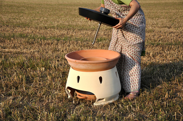 Dans la pratique, Eliodomestico est un fourneau à sol, totalement portable. Sur le haut de son corps se trouve une chaudière noire. Cette dernière doit être montée sur le fourneau à sol afin que l’eau salée puisse être transformée en eau potable.