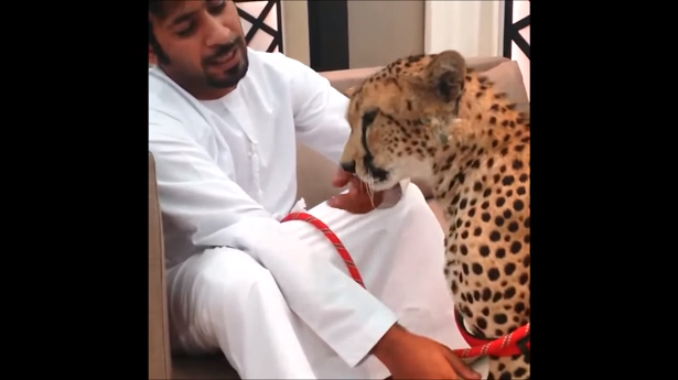 Un guépard en laisse © Capture d’écran Youtube