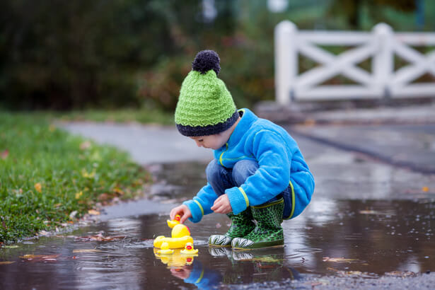 Équipez vos enfants avec des habits solides, résistants aux intempéries et qui ne craignent pas la saleté : bottes, jean et vieux pull. Ainsi, vous pourrez sans craindre les laisser patouiller et se salir dans la nature !