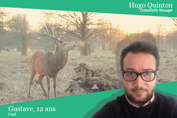 « Depuis Gustave a grandi et a maintenant 12 ans. Pas chiant, il passe son temps dans le jardin et m’aide à étendre mon linge sur ses bois lorsqu’il fait beau. En revanche lorsque vient le temps du rut, il sait se faire entendre le bougre avec son fameux brâme. Les biches font limite la queue pour passer du temps avec lui. Quel séducteur ce Gustave ! »