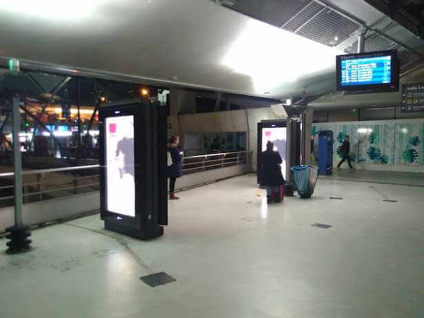 Panneaux publicitaires numériques lumineux dans la gare de Lille Europe © Séverine Bascot