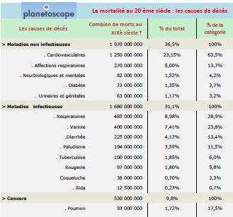 Si vous voulez voir les grands chiffres de la mortalité, cause par cause, vous pouvez consulter la rubrique Démographie / mortalité du Planetoscope.