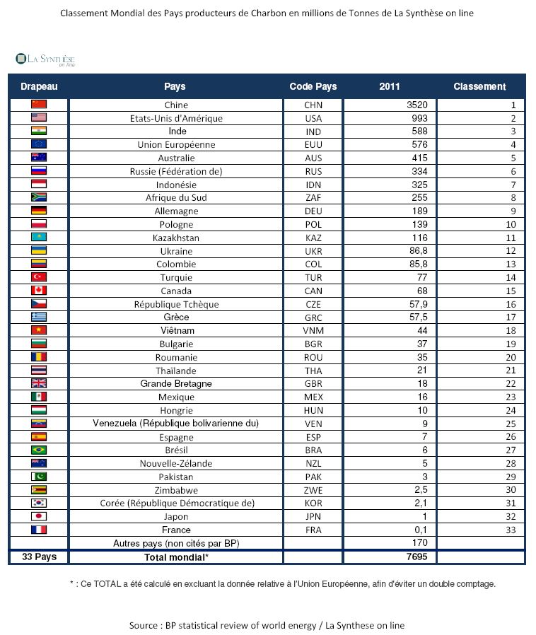 – Le charbon représente déjà la 2ème source d’énergie primaire