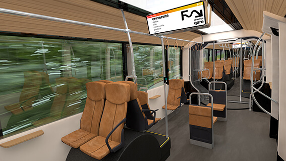 Côté design, les concepteurs ont choisi des matériaux simples et épurés : du bois, du cuir et beaucoup de vitres. Julien Gaubert, ancien directeur artistique de la maison Courrèges, était aux commandes : « J’ai souhaité un bus élégant et sobre pour qu’il s’intègre harmonieusement dans le paysage palois. Il sera très lumineux avec des larges surfaces vitrées et surtout confortable. » Notons aussi les atouts, rares jusqu’ici dans un bus : Fébus roulera sans bruit, ni vibrations de moteur, ni à-coups.