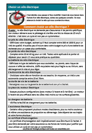 Vous avez choisi de passer à l’éco-mobilité, bonne nouvelle ! Avant d’acheter votre Vélo à Assistance Électrique , téléchargez cette fiche pratique : elle résume tout ce qu’il faut savoir et vérifier avant d’acheter en toute sécurité un V.A.E !